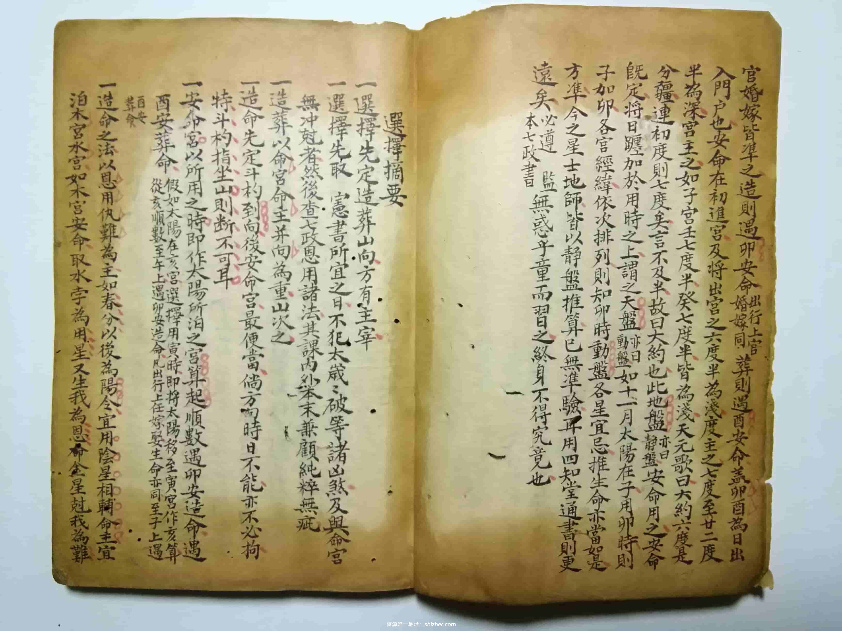 选择摘要,七政造命法,《选择诹吉撮要资览》,秀水于楷端士纂,清光绪十四年岁次戊子七月吉日张京铎錄于青峰鸣珂山馆,全本共91个双面,合计182页。