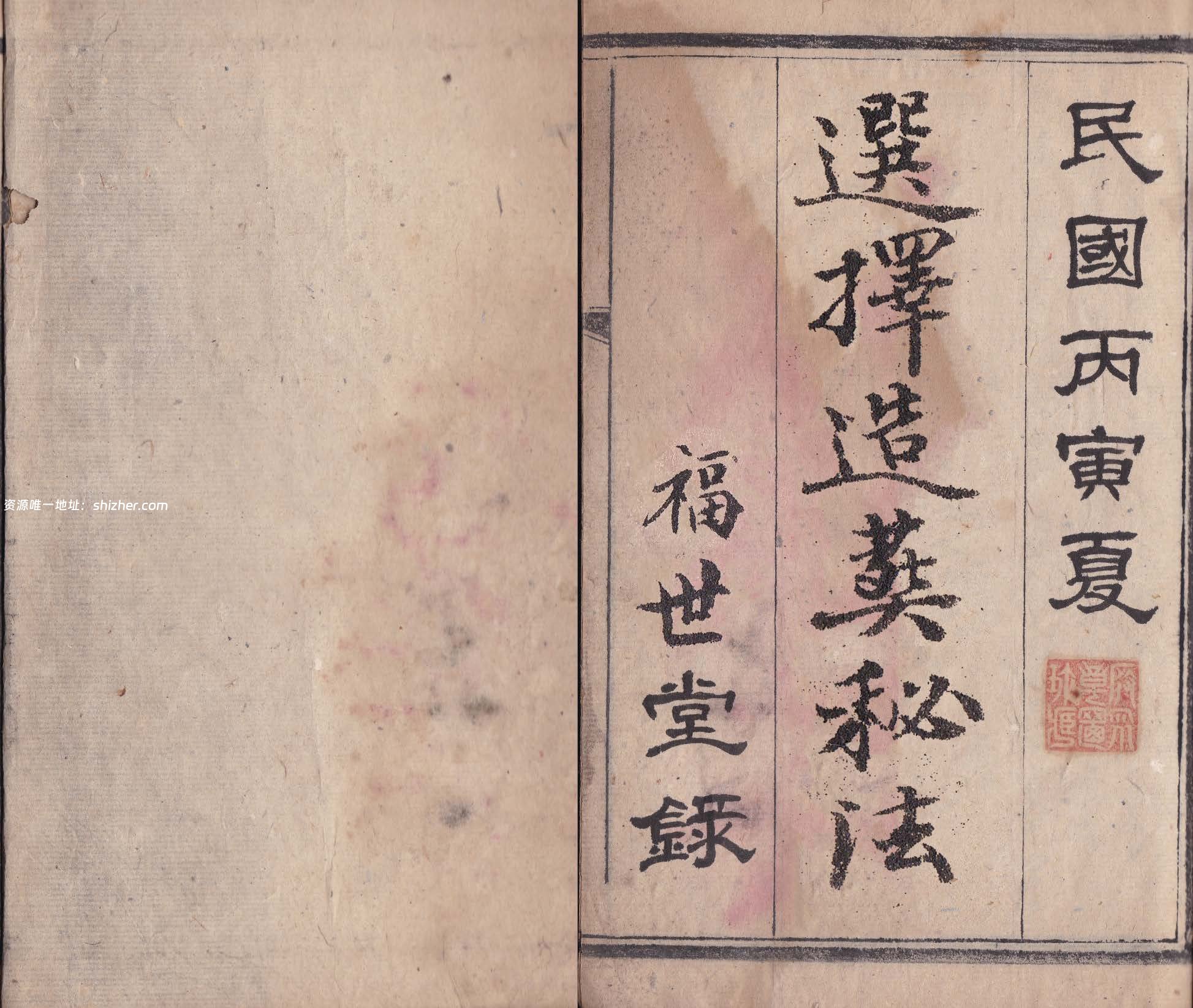 《选择造葬秘法》,民国15年(1926年),福世堂録,全书共44个筒子页,合计88面。