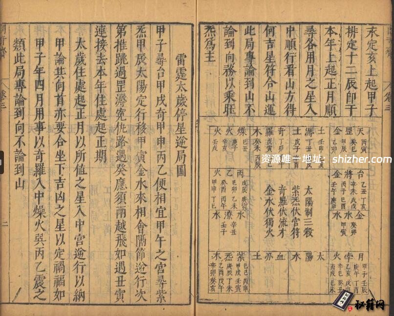 明天启七年(1627年)木刻板,刘基撰,江之栋编辑, 汪元标订。佐玄直指图解10卷, 赋1卷, 附上官出行1卷, 出行求财1卷。