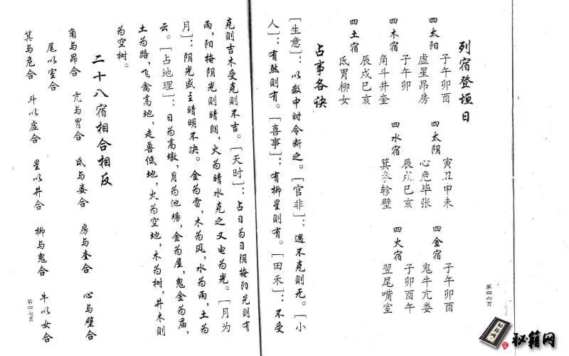 八门演禽里的内容是拆字演禽,以定主星和遇星断事,上篇为基本断法,可与其他禽书互参,下篇为多占断实例,介绍具体应用。此书还附录摘抄了其他禽书的一些内容,笔者辑录其中两首问题颇多的关于番禽倒将诀以飨观众。时禽翻活曜诀:先逆番时禽,后顺寻活曜,日乌月尾火奎流,水氐木虚金牛头,土宿常从蛇路走,并与寅上逆行游。番天禽妙诀:以时支起将星,顺行逐位向时禽,寻得时禽权且止,逆回时上觅他禽,顺数一周逆一轮,周数两转两番寻,时师若不加进转,枉使千年也不灵。