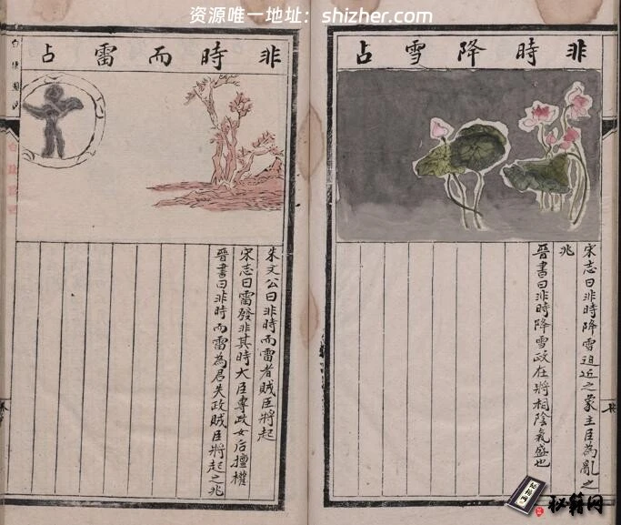 台湾省国立图书馆藏 手绘彩抄本《白猿图说》也称《白猿占经》或《白猿风雨图》共12卷(子-亥),其内容为以图为主的占候类著作。 据传乃诸葛亮所著,12卷896页全,疑是天书,书中专著风雨雷电霪晦明之兆、未附之日月星云图,殆好事者於,晦涩难懂!