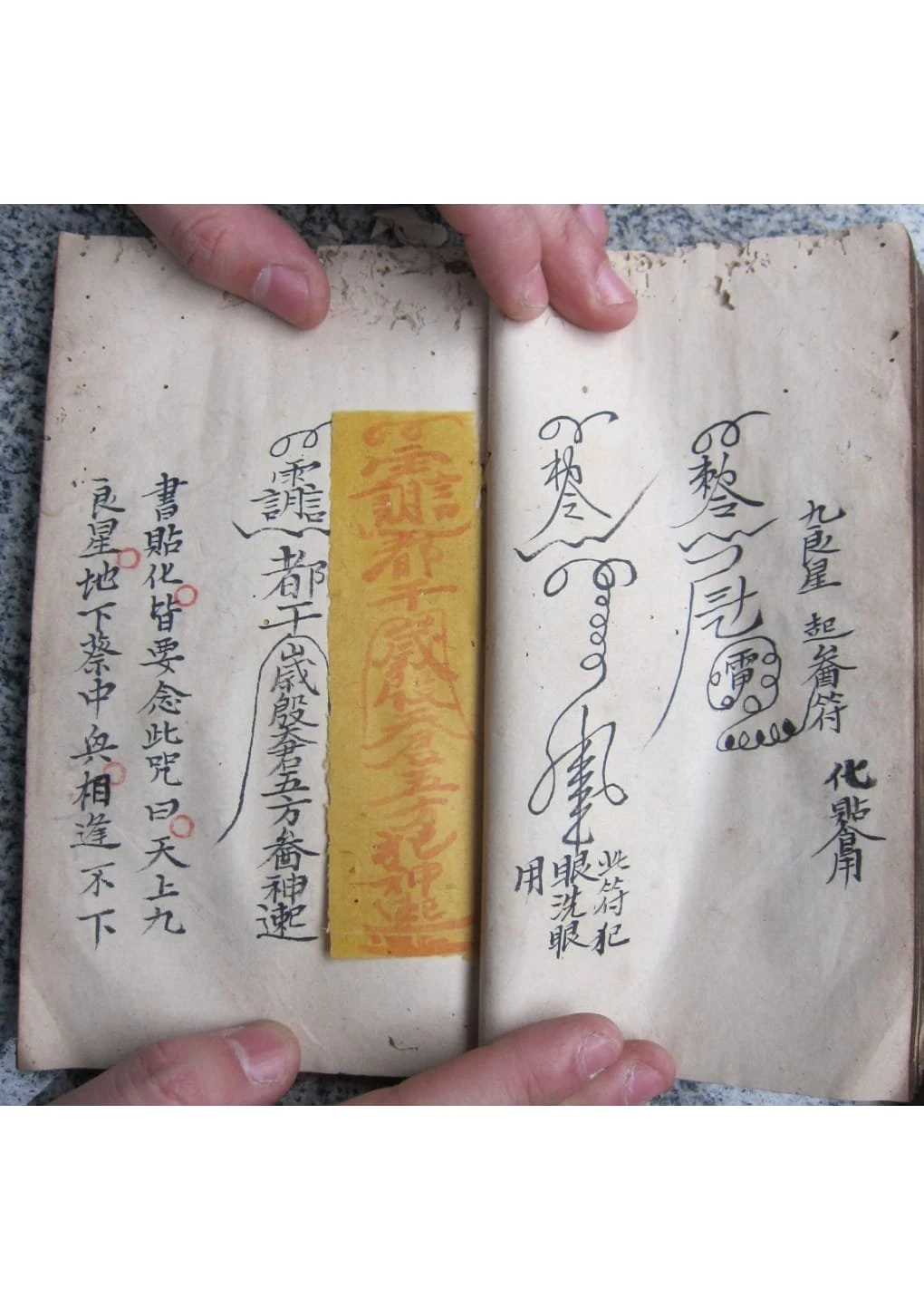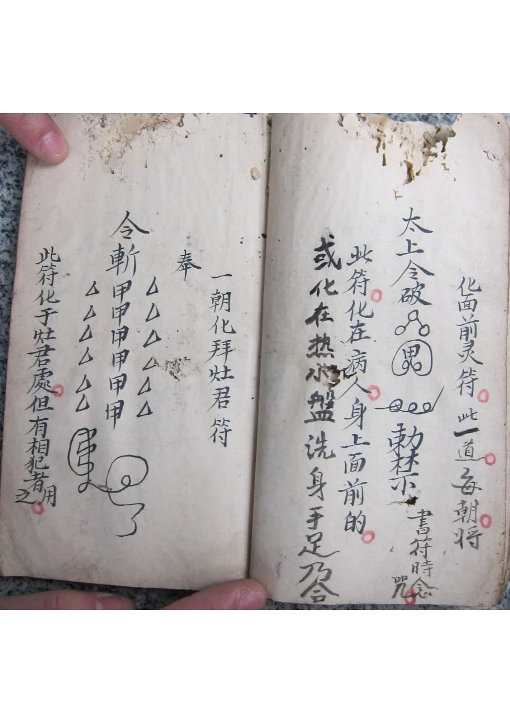 几遇百病,照依后列符式字法,或书符化灰,或调搽,或调服,或书符成章佩带,或贴,或书涂患处,各尽其法用之也。凡遇大小疮,宜办阴阳二症,如阴症,用羌汁磨墨,阳症,用好醋磨墨,照法书涂疮上,宜露出疮口为妙,待至墨于,用猪胆汁涂之,其效更速,但书符之法,不拘佩化及书于疮上,宜写治病之字,书入雷字内,更须先写勅,次写令,次写。。。