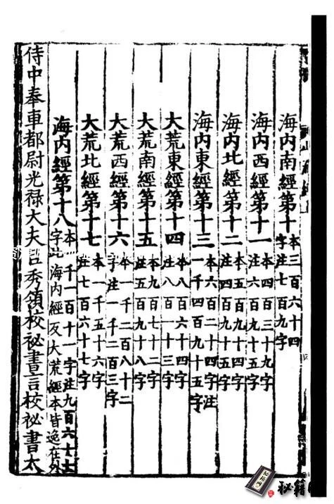 这些部分按照顺序编为18卷。最早留下的版本是晋朝郭璞所注释的《山海经传》,现在我们看到的各种版本《山海经》,都是来源于这个郭璞注本。没有这部注本,《山海经》就不会流传于世。因此我们要感谢这位晋朝奇人郭璞,但郭璞注本原图早就遗失了,而且在明清之前的图画都流失了,现在的配图都是明清以后配的。