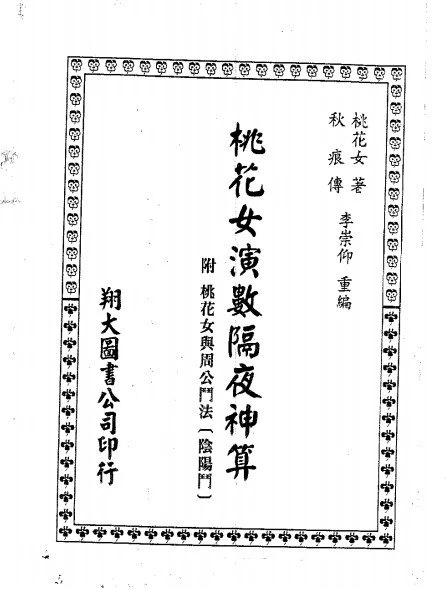 桃花女运用九九八十一数,配合阳四时之气,并参易理,共得二五六数,将人间明日之一切,及未来之悲欢离合、吉凶祸福,悉隐数中,无以遁形,如法卜算,咸能前知,秋痕得研此术,遂以此册相贻。人人易学,趋吉避凶,简明实用。