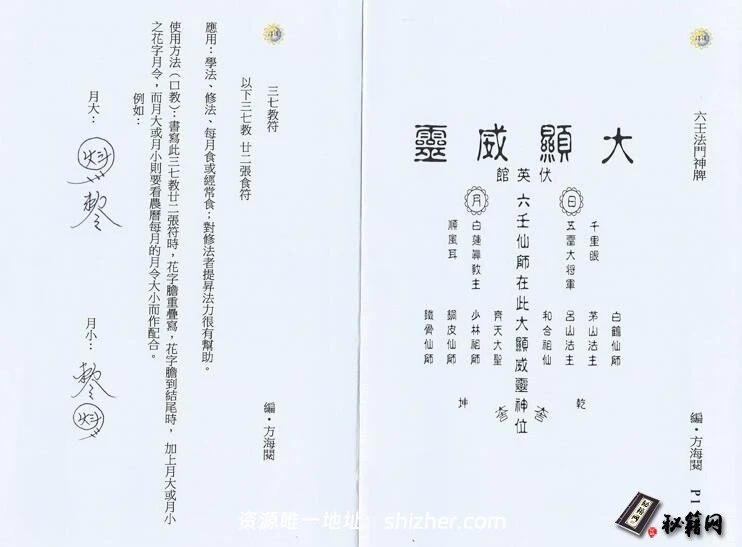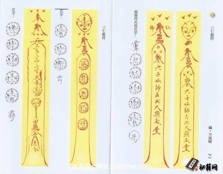 使用方法:书写此三七教二十二张符时,花字膽重叠写,花写膽到结尾时,加上月大或月小之花字月令,而月大或月小则要看农历每月的月令大小而作配合,