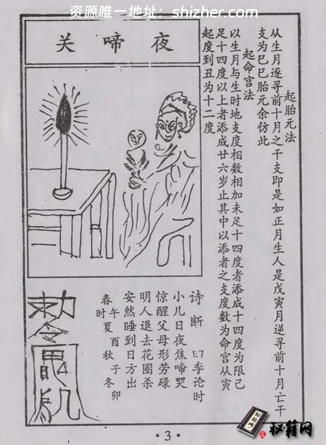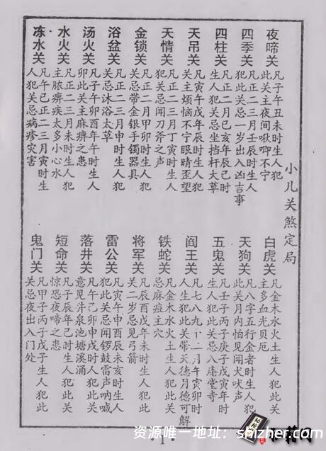夜啼关:凡子午丑未时生人犯此关,主夜间多啾唧不宁。