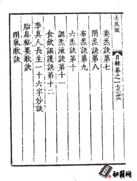 《赤凤髓》为其中主要的一种,《赤凤髓》全书三卷,收Q功动静功法九套,内诸仙导引法,华山十二睡功诀并绘图说明,至今仍可用作参考