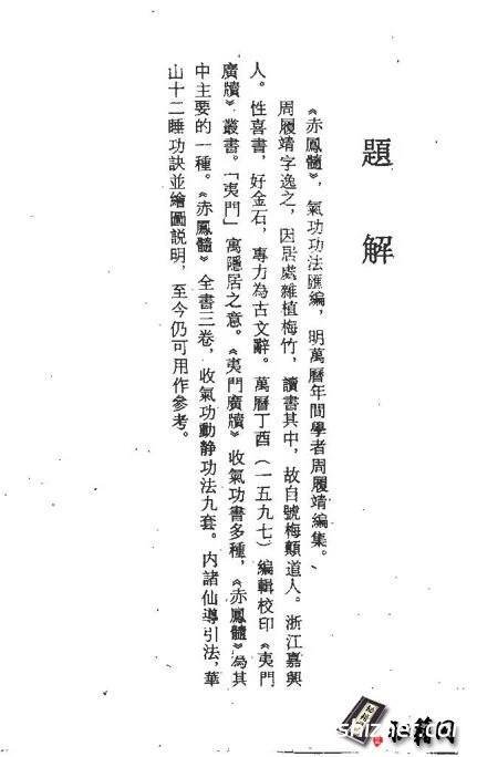 《赤凤髓》Q功功法汇编,明万历年间学者周履靖编集,周履靖字逸之,因居处种植梅竹,读书其中,故自号梅颠道人,