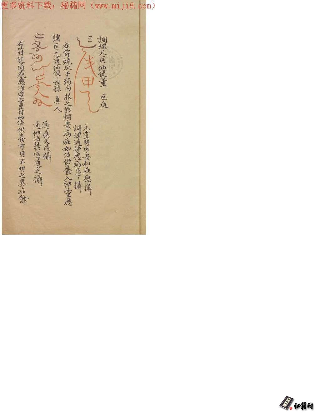 徐景輝以此濟世,門庭若市。乾冊又有〈合錄祝由科符篆後序〉,作者張樽指出,雍正甲辰年平安生以《祝由科》見示,符草續斷多矣,字置顛
