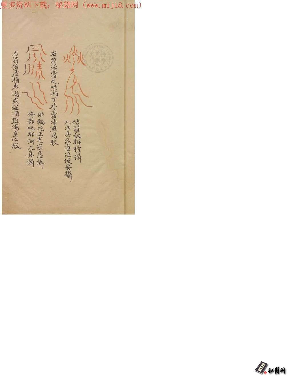 :國家圖書館典藏之《祝由科》或名《秘訣奇書》,為海內外罕見的鈔本。《祝由科》五冊,未分卷,惟封面分為乾、元、亨、利、貞
