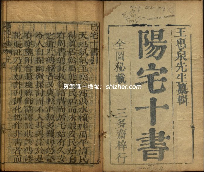 《阳宅十书》,被收录于术藏第20卷和34卷,明朝万历年间王君荣纂辑。