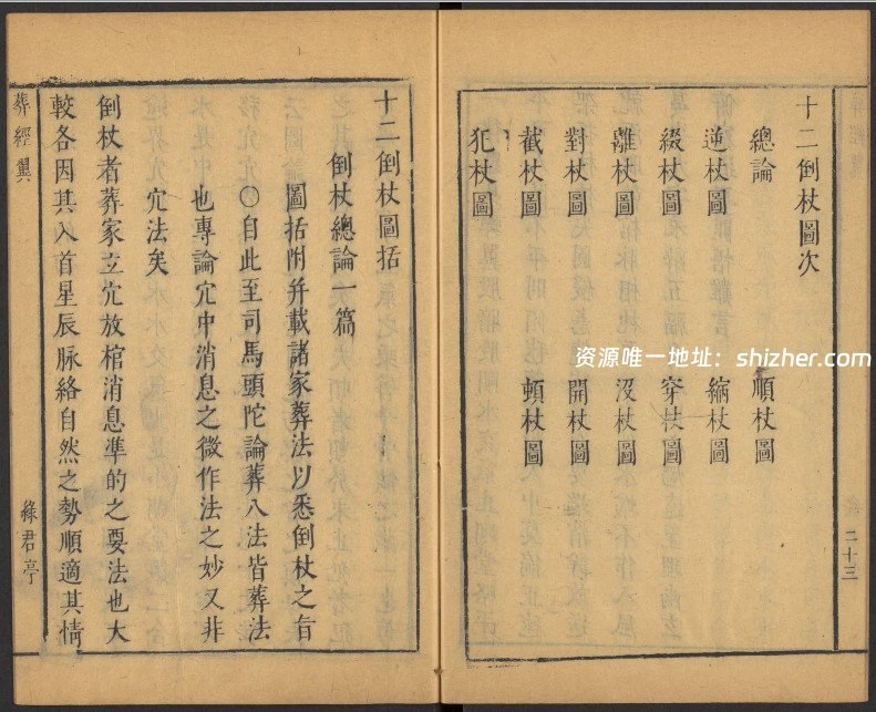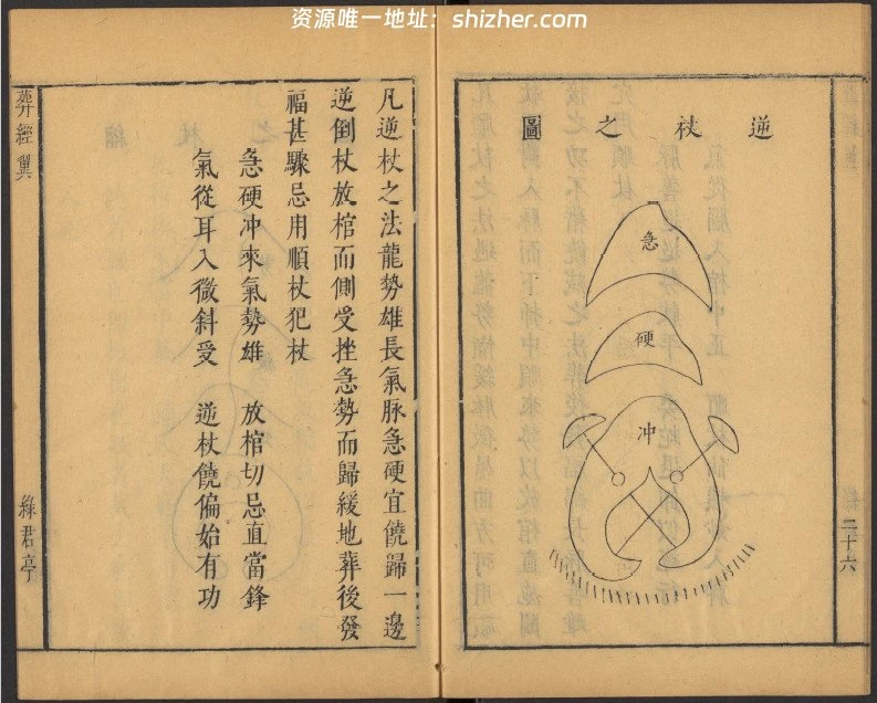 十二倒杖图次:顺杖图、逆杖图、缩杖图、缀杖图、穿杖图、离杖图、没杖图、对杖图、开杖图、截杖图、顿杖图犯杖图。