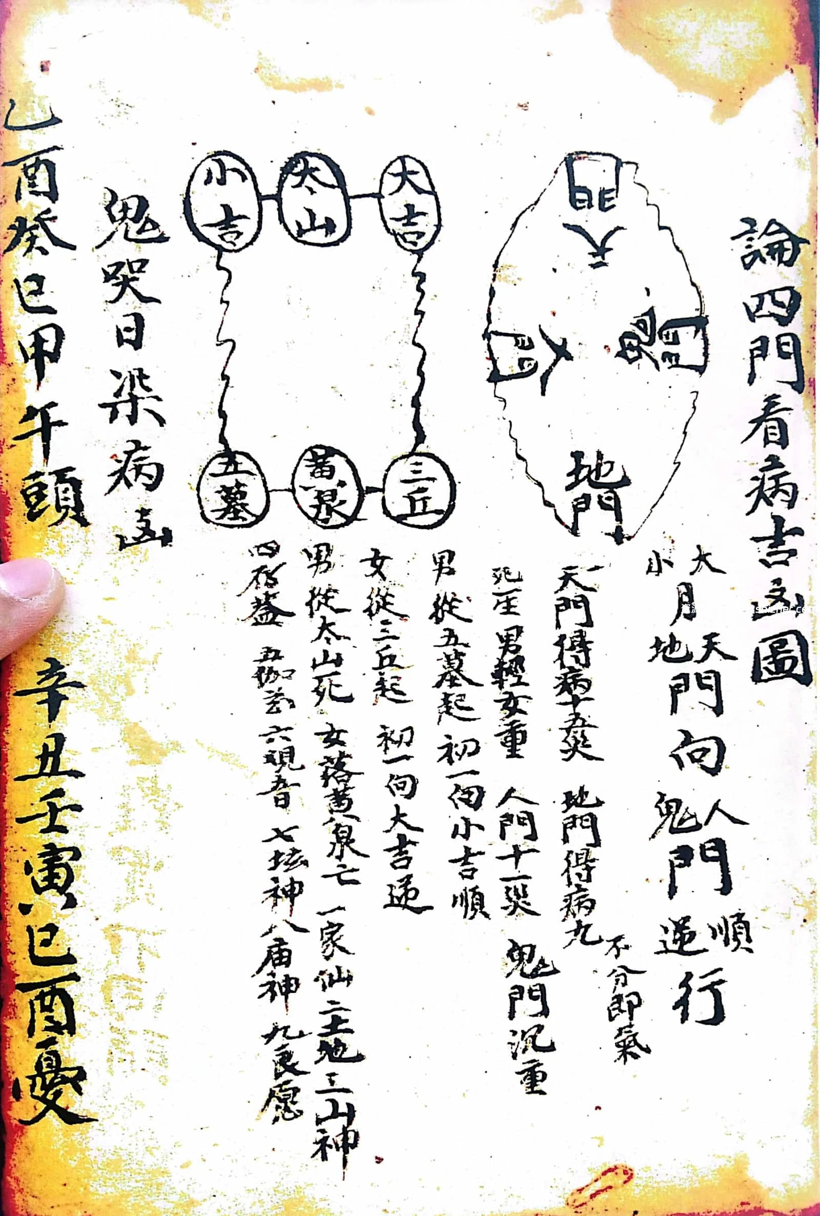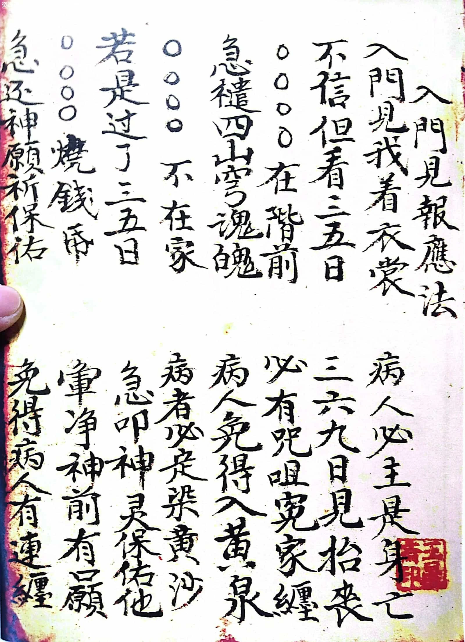 内容包含:入门见报应法、论人染病吉凶日、论人得病凶日、论建除十二星凶日、论病逐日吉凶看、论四门看病吉凶图、论四季得病凶日、论入门时断诀、论十二日遇凶时者主不吉、张天师注逐日染病吉凶、论建除十二星吉凶、论病龟头尾染病吉凶图、论断医子法、人见怪吉凶、十二地支见怪吉凶论、见怪总论吉凶、犬嚎怪断、请师人断法、袁天罡先生所注六十四爻吉凶、病人吃符式、先天断人吉凶、逐日得病吉凶断、逐日得病日期、纳音妙判、十干得病论、推逐日得病甲子、看禄马起例、看生死图推看何门得病吉凶、催生改便符、论得病八卦吉凶图式、论十二地支得病断法、十二命生人得病断法、五行得病法、又论五行断法、十二时辰得病判断、论每日得病断法、人得病禄马斜倒断法、得病在圈内外吉凶图、论十日甲子得病断法、看百怪吉凶、论六畜夜日怪、论凡人年月日时见百怪吉凶判法、十二日时辰见百怪判法、每日见怪吉凶判法、鸡啼非时辰判报、扫财门、收蚂蚁入宅秘旨、先天断吉凶卦书、驱邪治病法秘等诸多内容。