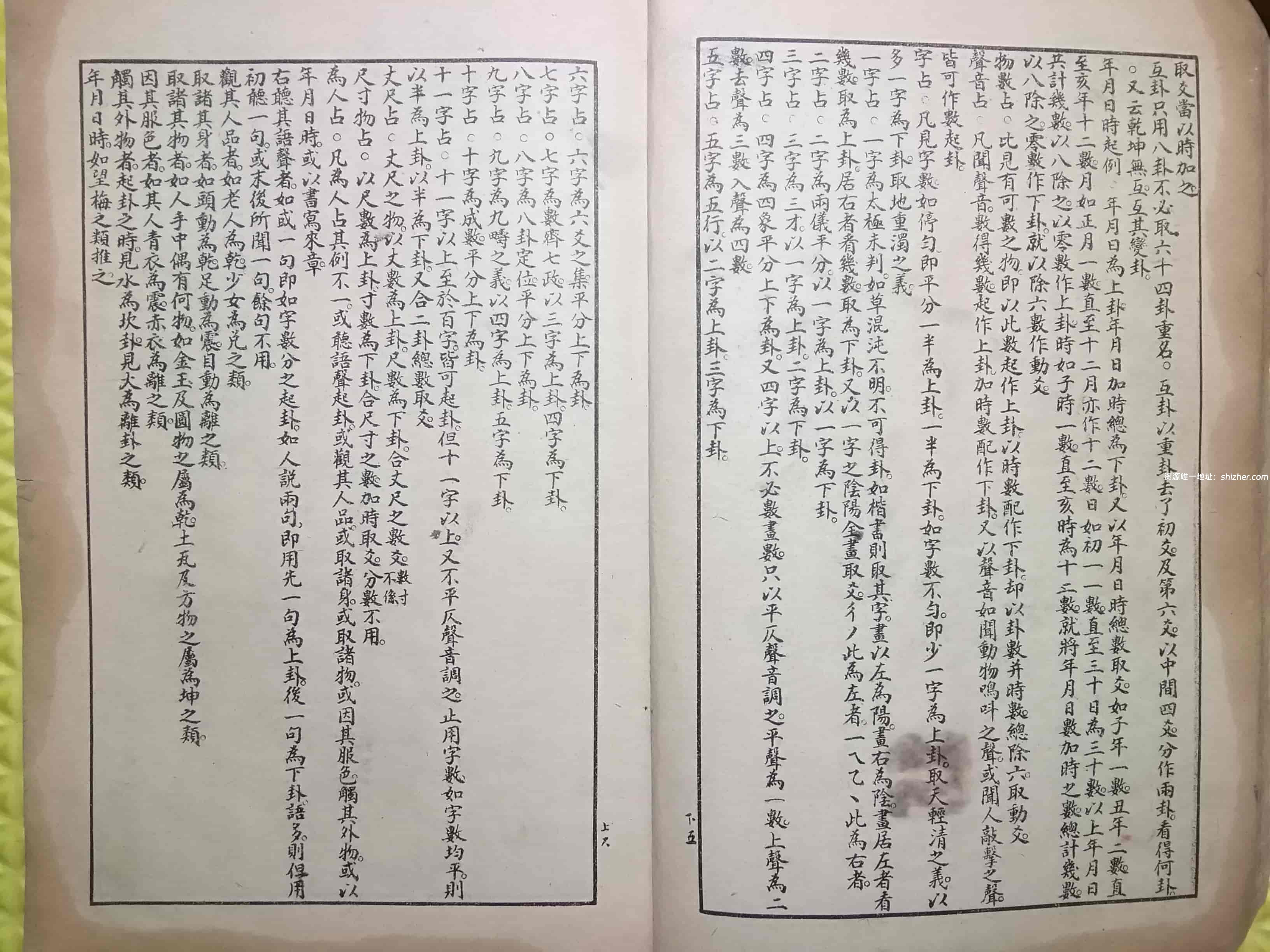 当前位置:首页>古籍扫描>六爻预测>《测字秘诀梅花易数》五卷.民国石印本 《测字秘诀梅花易数》五卷.民国石印本 六爻预测 23年9月18日 编辑 前往下载 师者教育师者教育 取消关注 关注 私信 《测字秘诀梅花易数》5卷,民国石印本,又名《新镌增定相字心易梅花数》、《新刻增定邵康节先生梅花观梅拆字数全集》,邵康节先生著,全本共58个双面,合计116页。 下载权限查看 ¥ 免费下载 评论并刷新后下载 登录后下载 查看演示 {{attr.name}}: 您当前的等级为 登录后免费下载登录 小黑屋反思中,不准下载! 评论后刷新页面下载评论 支付¥以后下载 请先登录 您今天的下载次数(次)用完了,请明天再来 支付积分以后下载立即支付 支付以后下载立即支付 您当前的用户组不允许下载升级会员 您已获得下载权限 您可以每天下载资源次,今日剩余次 相关文章: 《还本归宗:六爻预测指南》 《万应犯书》清刻本,清代崇阳周万国著 六爻古籍《筮杙.二卷清方式濟撰續》 《筮易》民间手抄本 版权声明 站内部分内容由互联网用户自发贡献,该文观点仅代表作者本人。本站仅提供网络资源分享服务,不拥有所有权,不承担相关法律责任。如发现本站有涉嫌抄袭侵权/违法违规的内容, 请 联系我们 一经核实,立即删除。并对发布账号进行永久封禁处理。在为用户提供最好的产品同时,保证优秀的服务质量。 本站仅提供信息存储空间,不拥有所有权,不承担相关法律责任。 给TA打赏 共{{data.count}}人 人已打赏 《测字秘诀梅花易数》五卷.民国石印本六爻预测