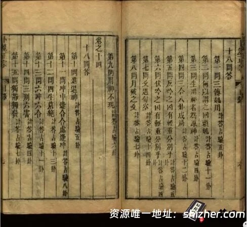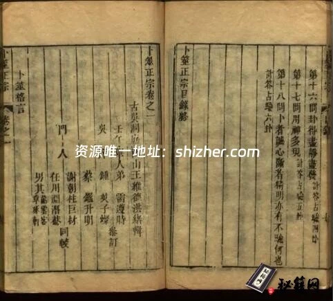 《卜筮正宗》,清人王洪绪辑撰,宏道堂梓行,十四卷,十四册一函全。半页九行,每行二十字。书页宽大,左右双边,版心单鱼尾。