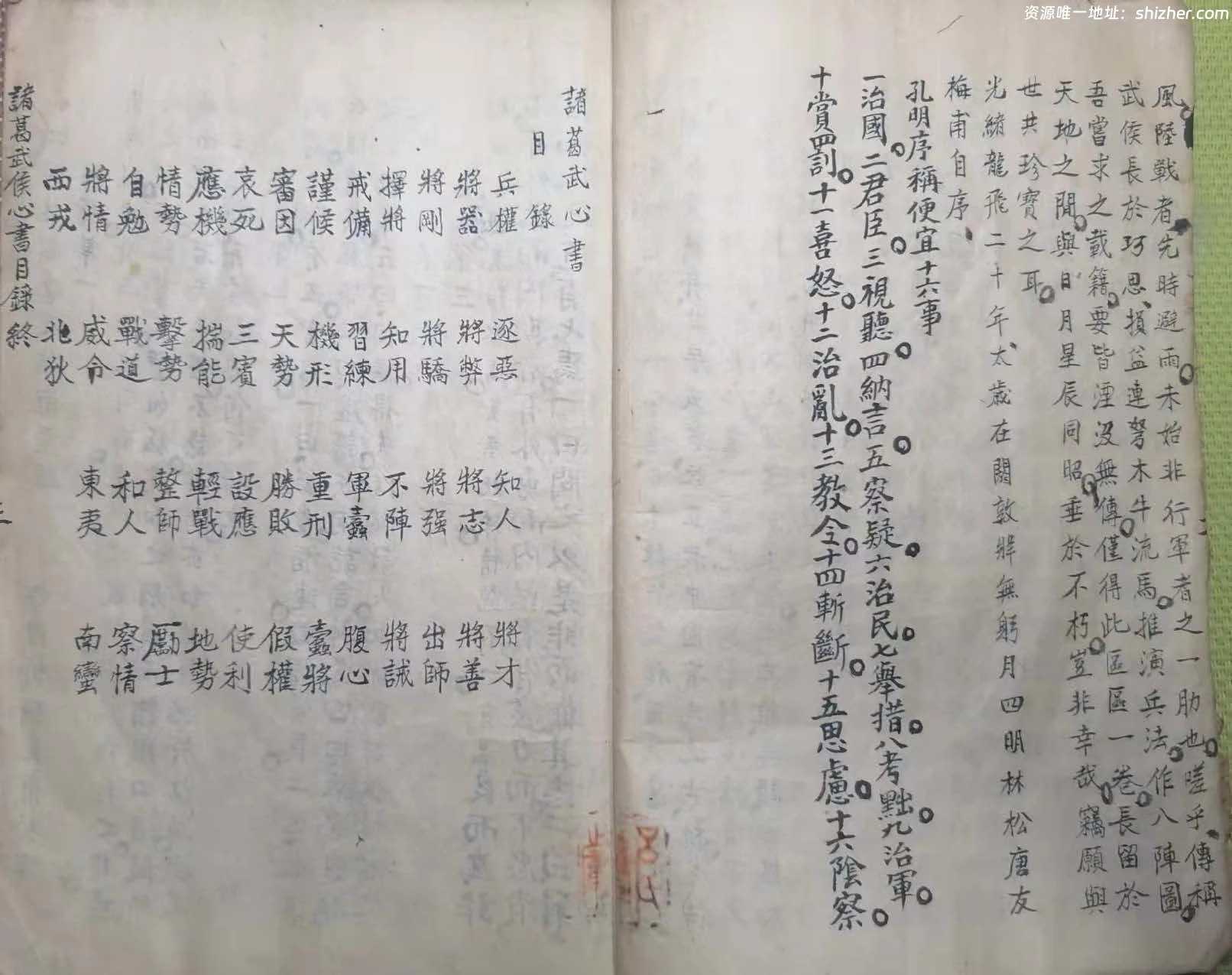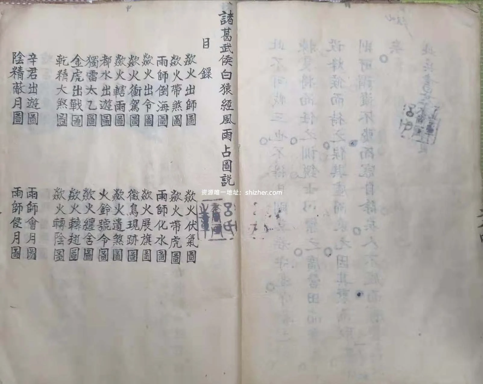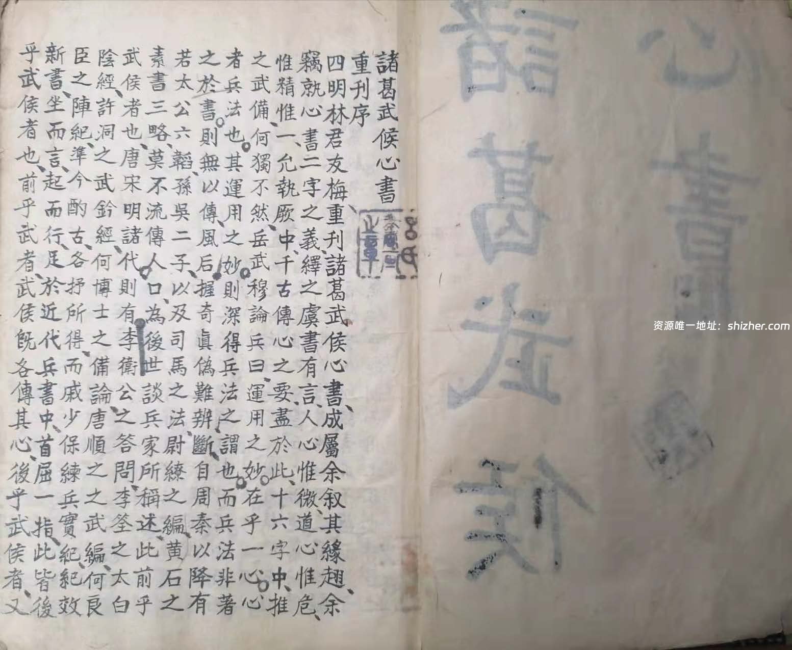 《诸葛武侯心书 白猿经风雨占图说》手抄本,光绪甲午年(1894年)秋七月上澣,石薌黄观保谨书,四明林松唐友梅甫作序,兵书、兵法、天象类古籍,全本共37个双面。