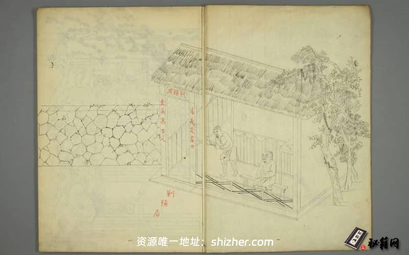 《支那风俗图会》中有一张图为内房、一张图为睡房。感觉内房就是起居室或梳妆间,有梳妆台、脸盆架。梳妆台上有镜子一类的,但有茶杯是什么?难不成梳妆有人伺候,主人喝着茶,下人梳着头?
