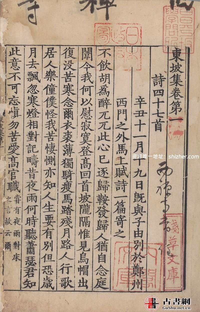 古籍.东坡集.四十卷.存二十三卷.宋.苏轼著.日本公文书馆藏.南宋年间杭州刊本