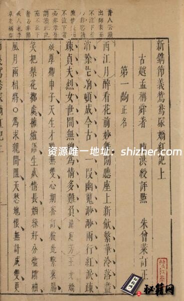 卷首题:古越 孟稱舜 著、陳洪綬 評點、朱曾萊 訂正