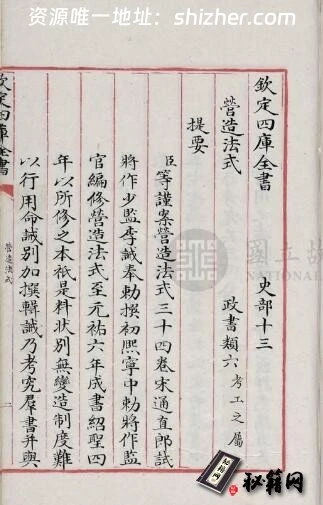 古籍.营造法式. 三十四卷. 补遗一卷. 宋. 李诫. 撰. 清乾隆间写文渊阁四库全书本丨台北故宫博物院藏(有水印)